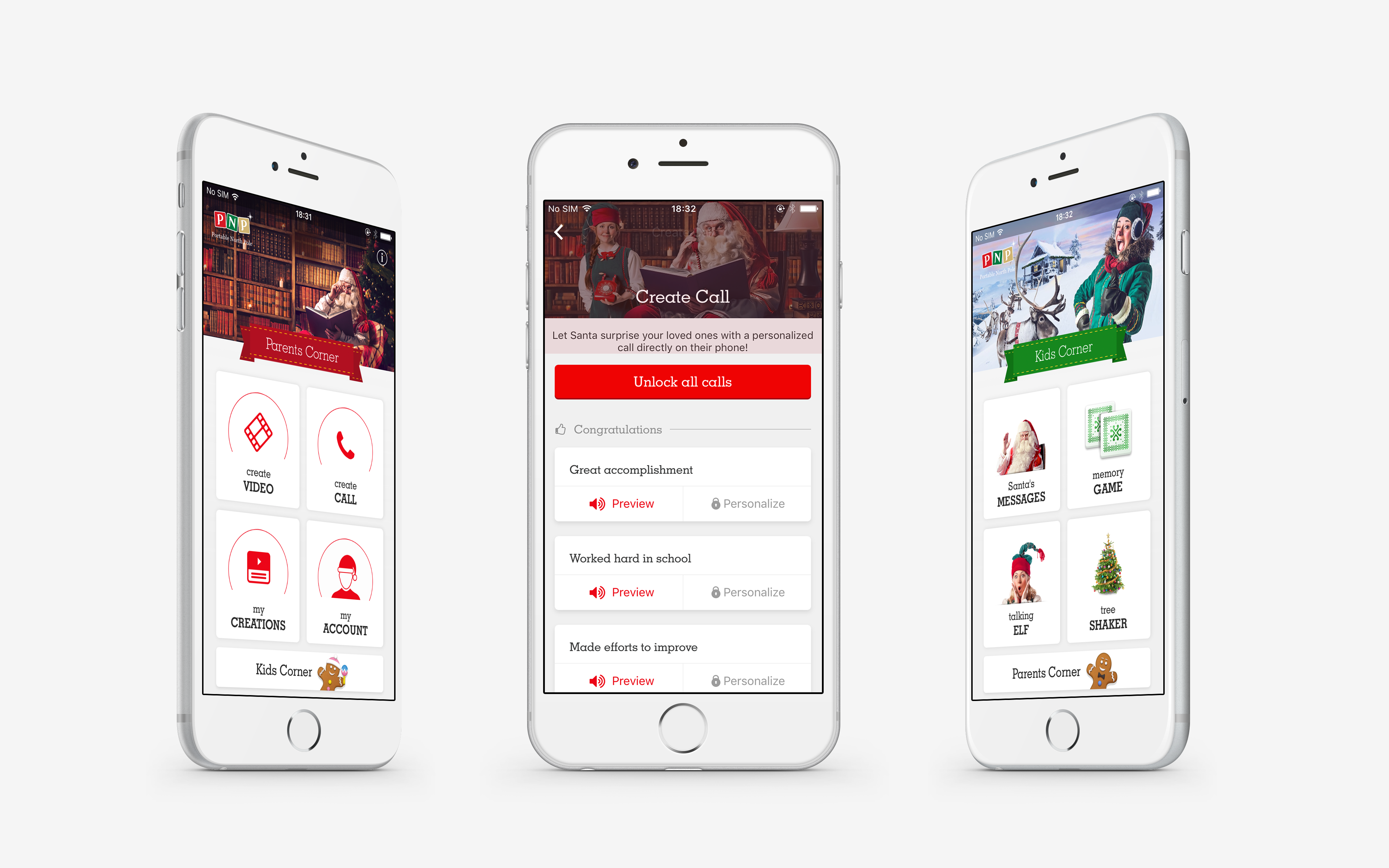 This application was developed for parents who would like to customize videos for their children. It had 2 “corners”. In the Parents corner they could purchase and fill in the forms to customize the experience. In the Kids corner, their children could play their videos and choose other games from an Advent Calendar, which had a surprise for each day.