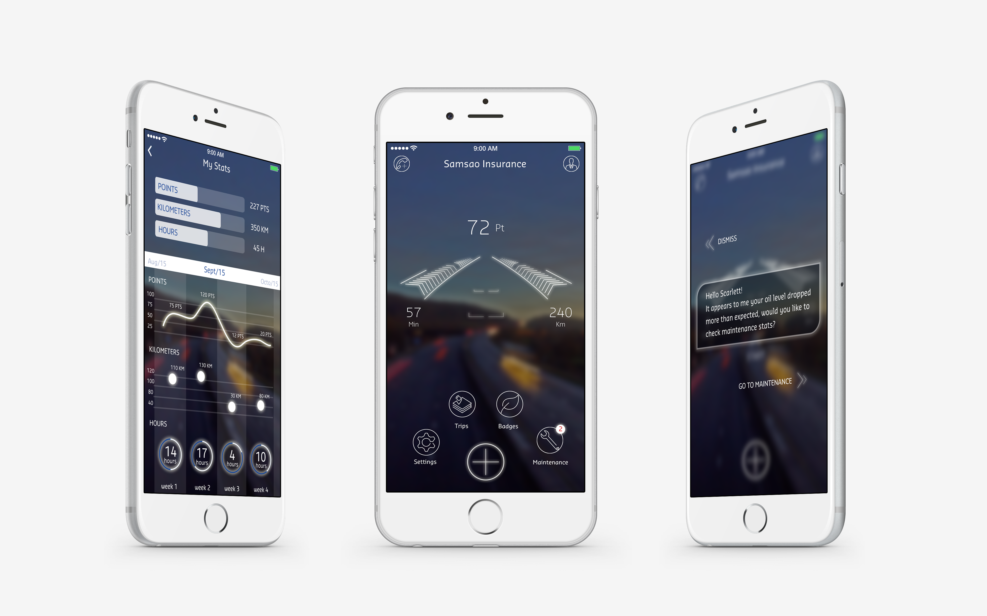 Companion Design This app was part of a contest for an app for insurance companies. The concept was to have a companion for each trip, providing the user with information about the car status and the driver performance. Related