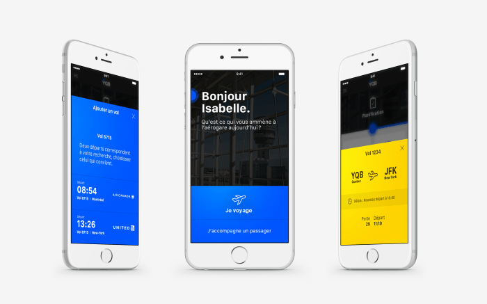 The Québec City Jean Lesage International Airport (YQB) mobile app helps the passengers and their companions during their journey through YQB. The app provides relevant informations to users based on their progress and location in the terminal. For example, the user can track flights in real time, reserve a parking space and view waiting time at the security checkpoint.