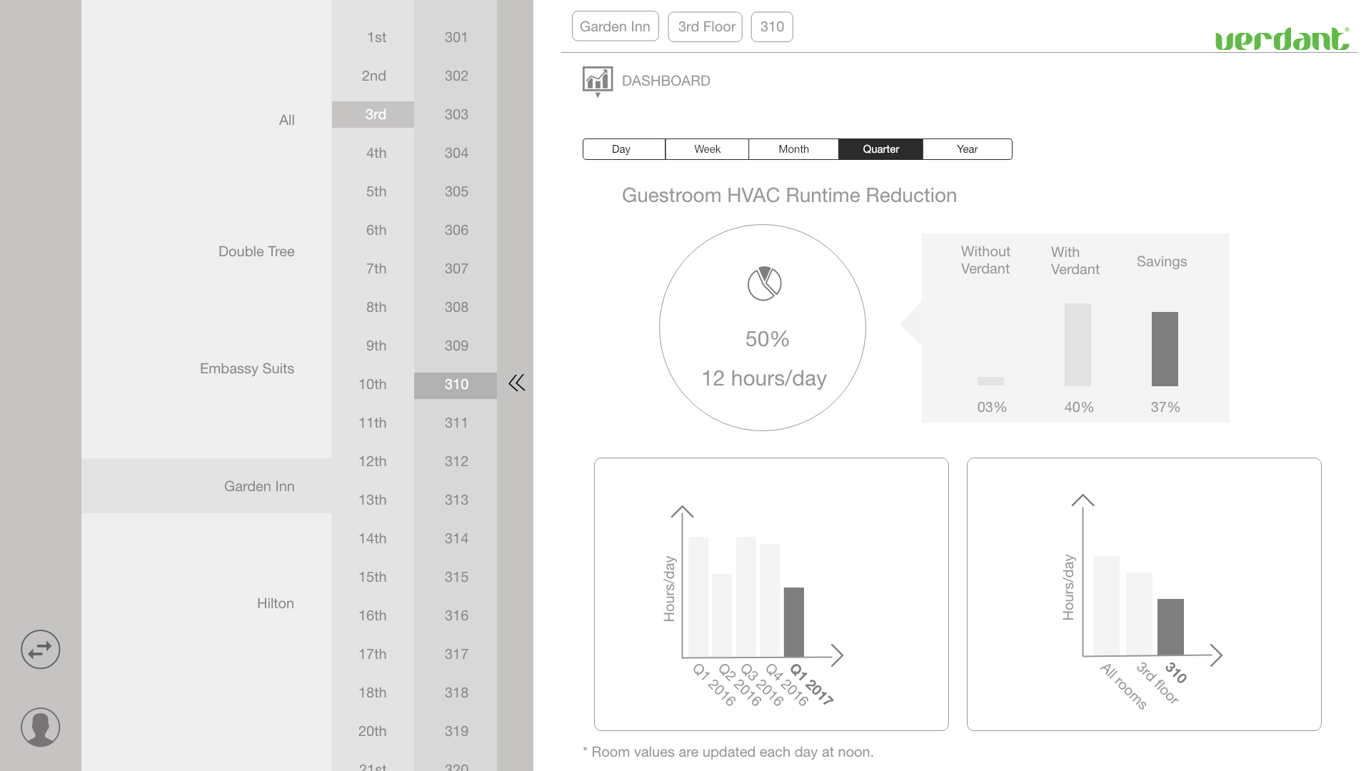 - hotel managers could infer how much they were saving with the Verdant technology.